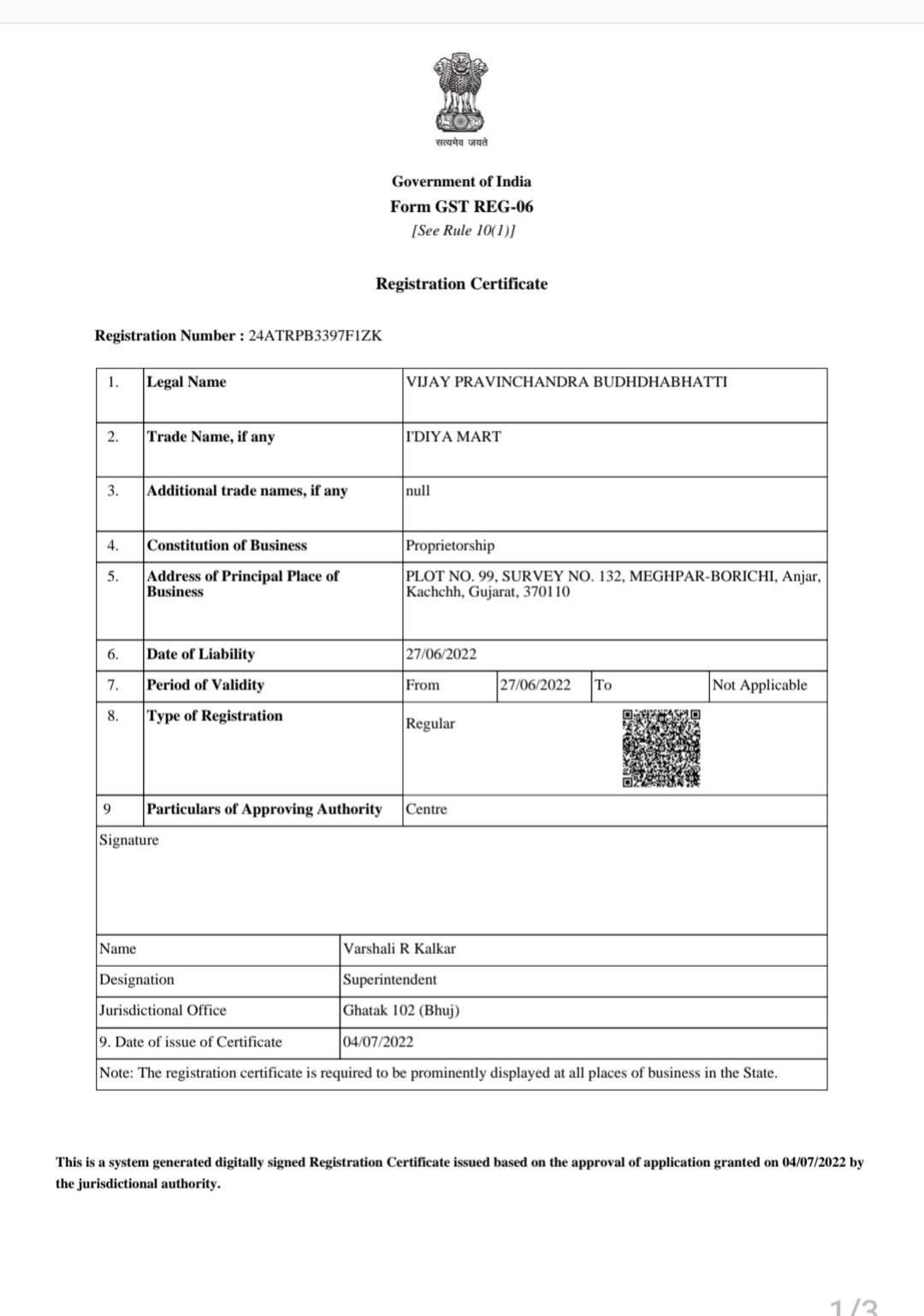 Plot no 80 Odhav park-2 Mundra road relocation site Bhuj Kutch
